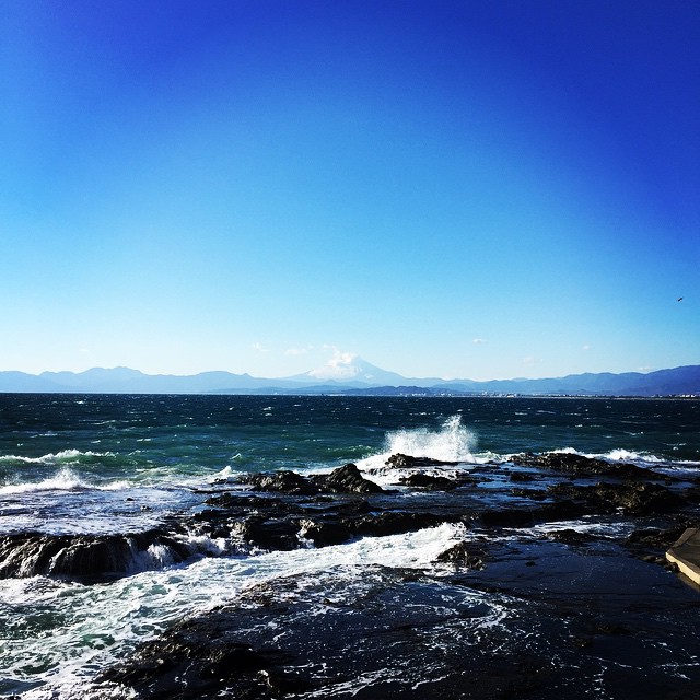 水族館は江ノ島の海の目の前にあり、冬の晴れた日に行ったので、富士山+海の絶景を見ることができました。