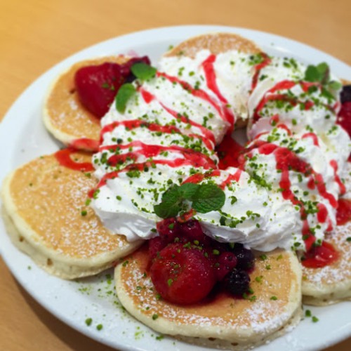 最後に、Eggs’n Things でパンケーキを食べました。横浜の山下公園前にあるお店は大行列ですが、平日だったからか2組くらいしか並んでませんでした。クリスマス限定のパンケーキを食べました。