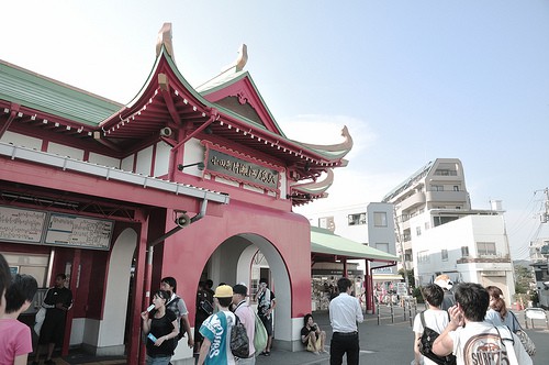水族館は小田急江ノ島線の「片瀬江ノ島駅」が最寄り駅です。駅は、まるで竜宮城を思わせる派手な建物でした。