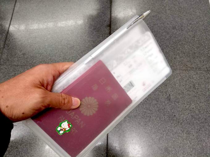 海外だとスマホでぴっとゲートをくぐれなかったりするので、Eチケットの印刷は必須。さらにいうと、いざというときはやっぱり紙が強いので、予約した時のメールとか印刷しておくと便利です。そんな書類をA4のクリアケースに入れると持ち歩きにくく落としやすい。
