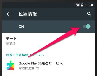 わかりにくいんですが、上の端末の設定でも位置情報をオンにしましたが、Google側でもオンにしないと、後述するデバイスマネージャーの設定ができなくなります。