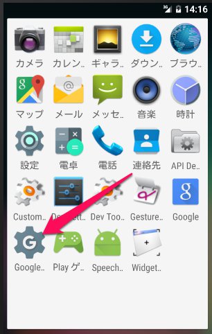 いよいよ設定を開始します。設定画面は端末に寄って異なるみたいなので、似たような設定がないか探してみてください。Androidはだいたい一緒のはずですが、ここでは「Android5.0端末」を使ってます。まずは、ホーム画面で、この肉まんみたいなアイコンをタップ。