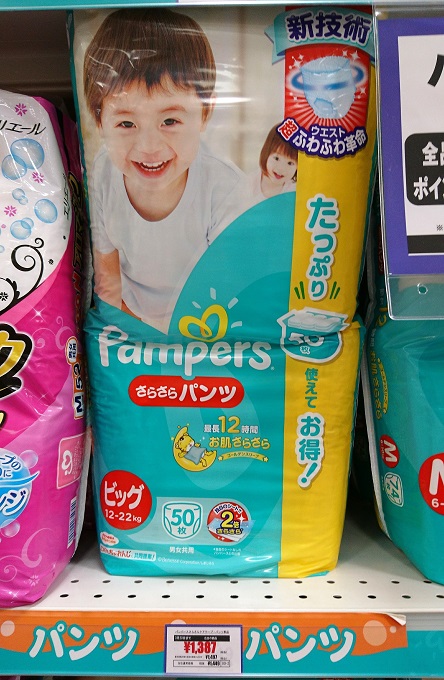 いつもにこにこパンパース。新生児からビッグサイズになるまで、近所価格でも最安だったことがおおいので、トータルで一番購入したおむつな気がします。