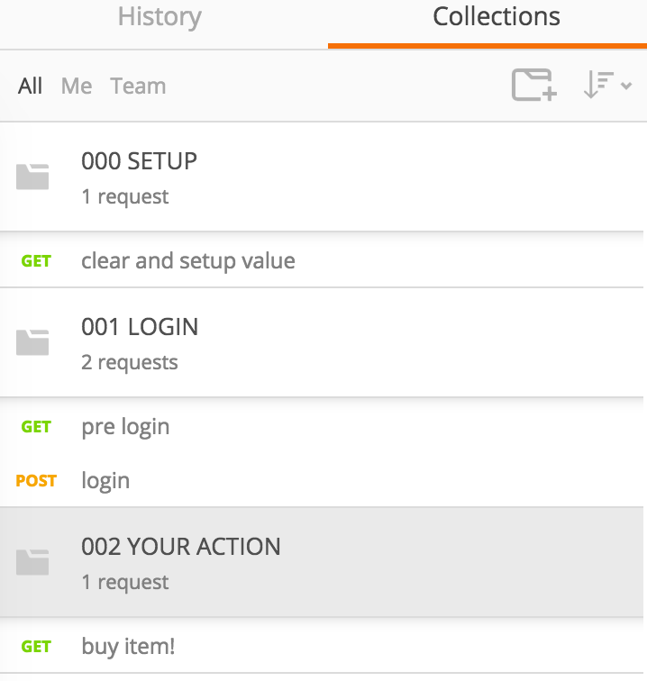調べてもいい情報が見つからなかったので、コレクションをわけて実行することにした。実行した各コレクションの結果をpostman.setEnvironmentVariable("key", "value");に保存しておけば、データをキープできるので、次に実行するコレクションで使える!