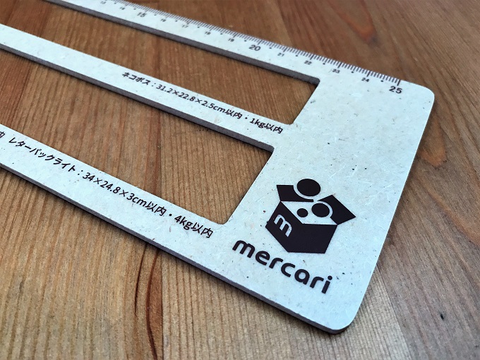 8/24にメルカリストアがオープンしたので、早速オリジナルグッズを買ってみました。とくにネコポス・ゆうパケット用定規とメジャーが欲しかったのです。