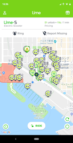 シェアスクーターはBirdとLimeというアプリが使えて、Birdは免許書のスキャンが必要ですが、Limeはなしで使えました。街のいたるところにスクーターが乗り捨てられており・・・