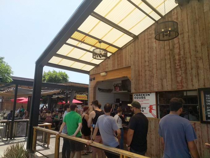大人気にチキンのお店。平日昼間なのになぜか行列です。チキンは衣が美味しくて何本でもいけます。