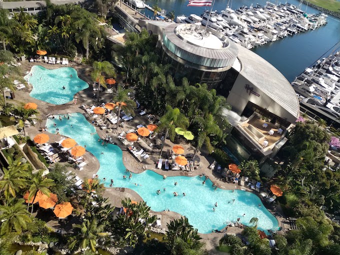 宿泊したマリオット・ホテルは港に直結したホテルです。プールは塩味なので海水なんでしょうか。昼間は暑くてプールが気持ちよいですが、夜は25ぐらいまで下がるのでちょっと寒く感じたりもしました。