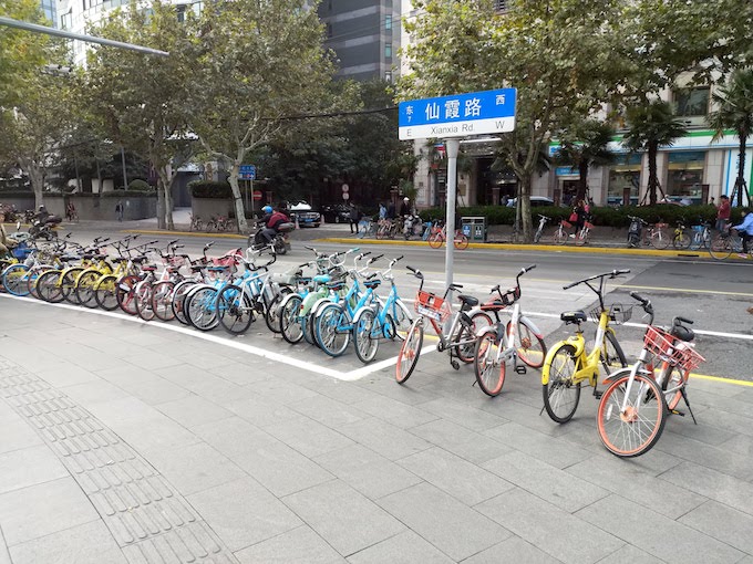 さすが中国はシェアバイクの国。いろんな企業がこのサービスを提供しているのでとてもカラフル。そして、自転車の数がすごいですね。朝になると大通りには自転車がきれいに並んでいます。