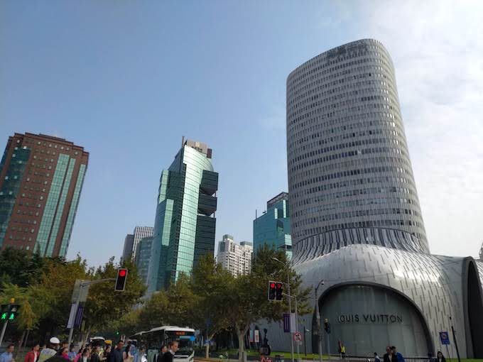上海は見た目も環境も未来感がすごいですね。青空が見えるので、北京と比べると空気はきれい。道もきれいに整備されていて、渋滞もまだ少ないほうで、秩序を感じます。