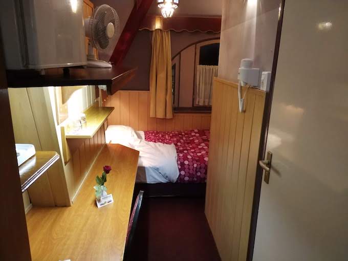 朝早く起きる自信がなかったので、ハーグからアムステルダムに移動。この「Nadia Hotel Amsterdam」に宿泊。入り口を見つけるのが難しいですが、こじんまりして清潔感があって、スタッフがとても親切なホテルでした。まるで船に乗っているかのような部屋の間取りも、秘密基地感があって落ち着きます。
