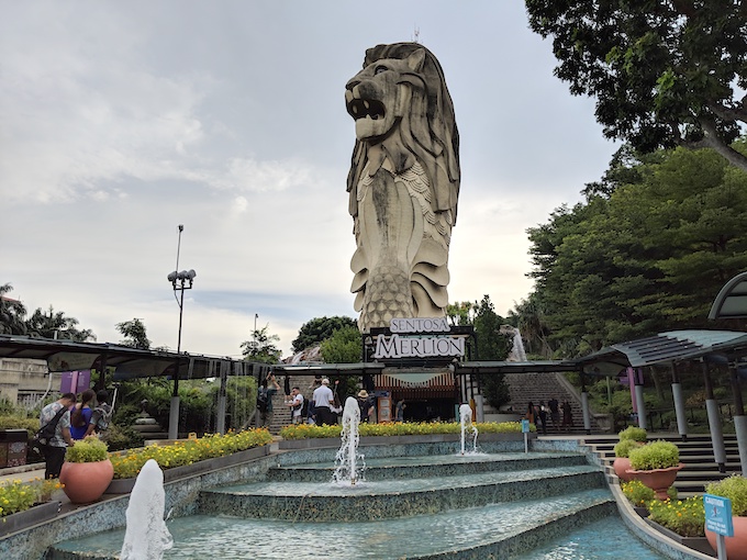 セントーサ島にはさらにでかいマーライオンがいました。白というより黒い!