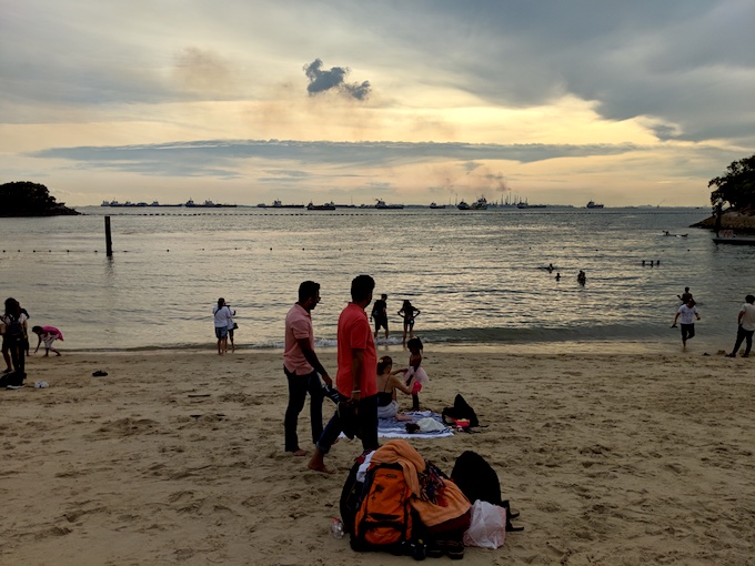 人工のビーチも人で賑わっていましたが、沖合にタンカーや工場があるので水はあんまりな感じ。シンガポール特有の作られた感がある場所でした。