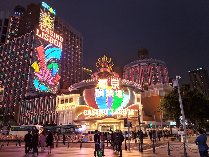 街を一周りして夜も暗くなると、マカオの街が本当の顔を見せてくる。ホテルリスボアはマカオを代表する老舗ホテル。中は迷路のような作りだったが、いたるところが豪華にしあがっているが、変に成金感もなく、日本にはなかなかないタイプのホテルにだろう。