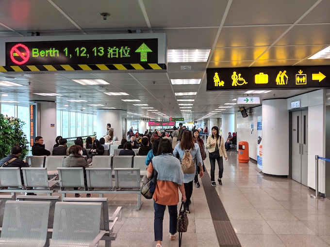 翌日は思った以上に時間ができたので、マカオへと向かった。九龍公園を抜けた場所にフェリーターミナルがあり、そこから1時間かからずにマカオに行ける。ターミナルはやはり平日でも多くの人(おそらく中国人と少しの韓国人と日本人)がいた。