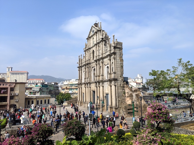 マカオは小さな地域なので、4〜5時間あれば昼食込みでひととおりまわれる。途中、カフェが全然なくて、思った以上に休憩ができなかったが、教会や小さな公園、広場にはベンチがあるので、飲み物を持ち歩くのがいいだろう。今の季節は長袖Tシャツに羽織るものがあれば十分な涼しさで、夏場になるとそうはいってられない暑さになる場所だ。
