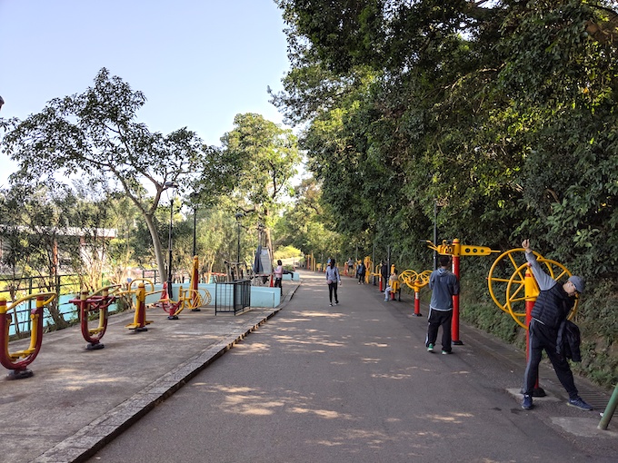 九龍エリアの中心を走るネイザンロード沿いには九龍公園があり、賑やかな繁華街のそばに、下町感あふれる公園が広がっている。朝には太極拳、ヨガ、体操など、香港の人たちはみんな健康的だな。