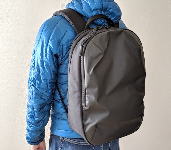 Day Pack の特徴はAerのプロダクトの中でもっともスリムな点でしょう。14リットルと記載されていますが、もうちょっと大きい気がします。ひとつつ上のサイズである Tech Pack が22リットルで、一回りでかいです。