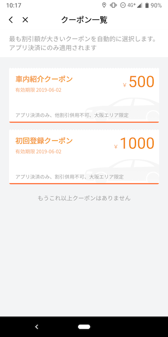 クーポンも太っ腹で、初回登録で1000円使えて、社内で500円のクーポン。利用後に20%オフクーポンも配っていました。ためすにはちょうどいいお値段です。