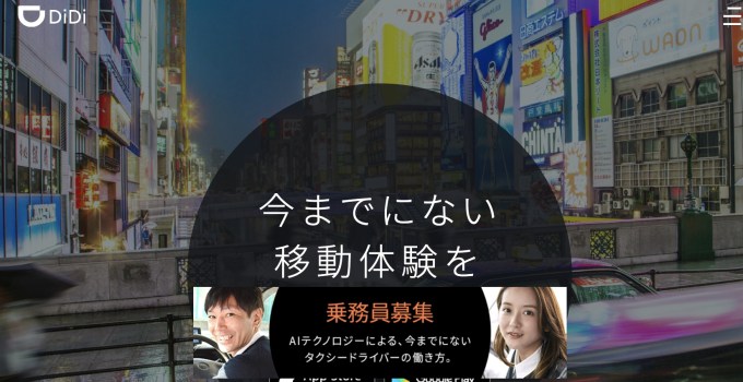 DiDiは中国産のライドシェアサービスアプリです。日本では白タクが違法なので、タクシーの配車アプリとして展開してます。Uberは第一交通と手を組んでますね。大阪のみに対応していましたが、今年の春から東京と京都にも展開しています。年度内に13都市まで広がるそう。