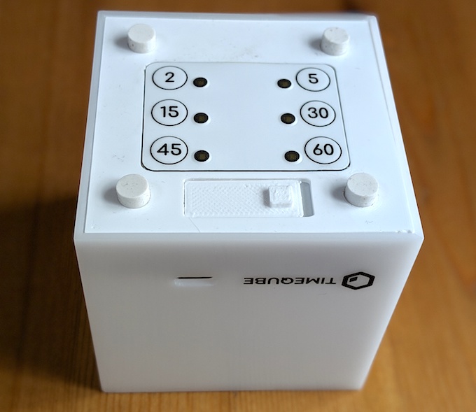 ユーザインタフェースはとてもシンプル。電源を入れて、時間を選んで、キューブを机に置きます。