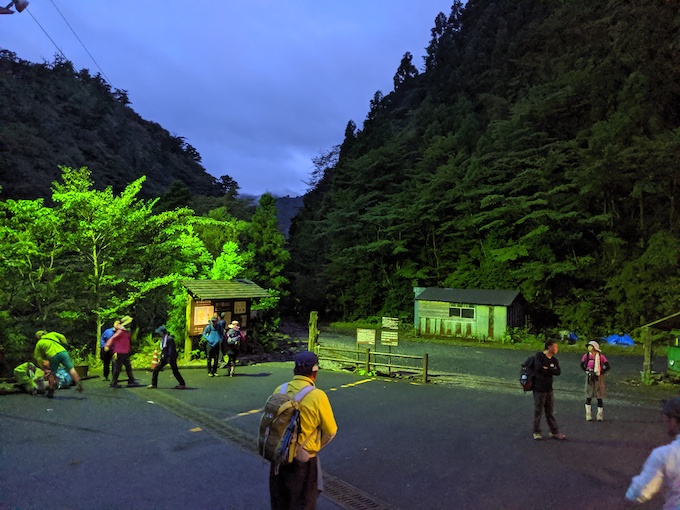 白谷雲水峡は出発時間が遅いので、ヘッドランプいらず。雨が振りやすいのでレインウェアは必須。レインウェアは蒸し暑くなるので、中はTシャツとか軽装が吉。