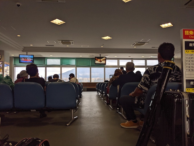 行きはのんびり高速船を選び、桜島が見える待合室で、羽田で乗り遅れた後輩を待つ。彼はなんとか出港5分前に到着したのでとりあえず肩パンチ。やっと揃ったメンバーで船に揺られ、種子島をチラ見して屋久島に到着した。