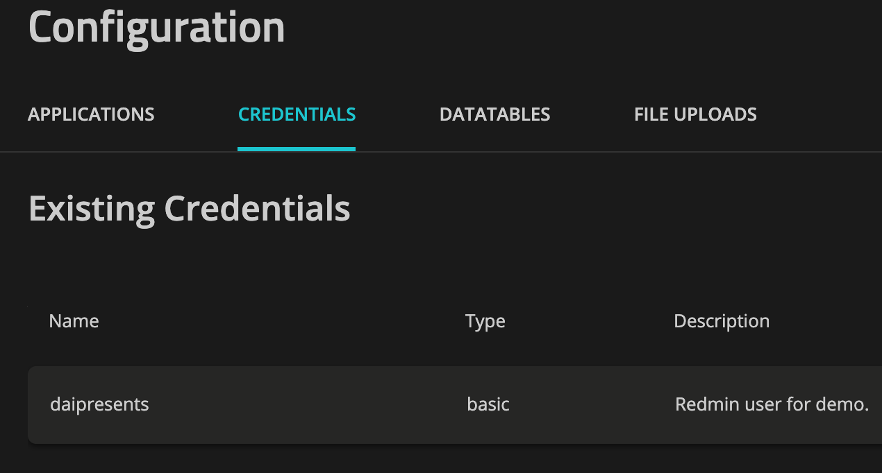設定は、まず「Configuration」の「Credentials」を開いて、ログイン情報(ユーザ名、パスワード)を登録。