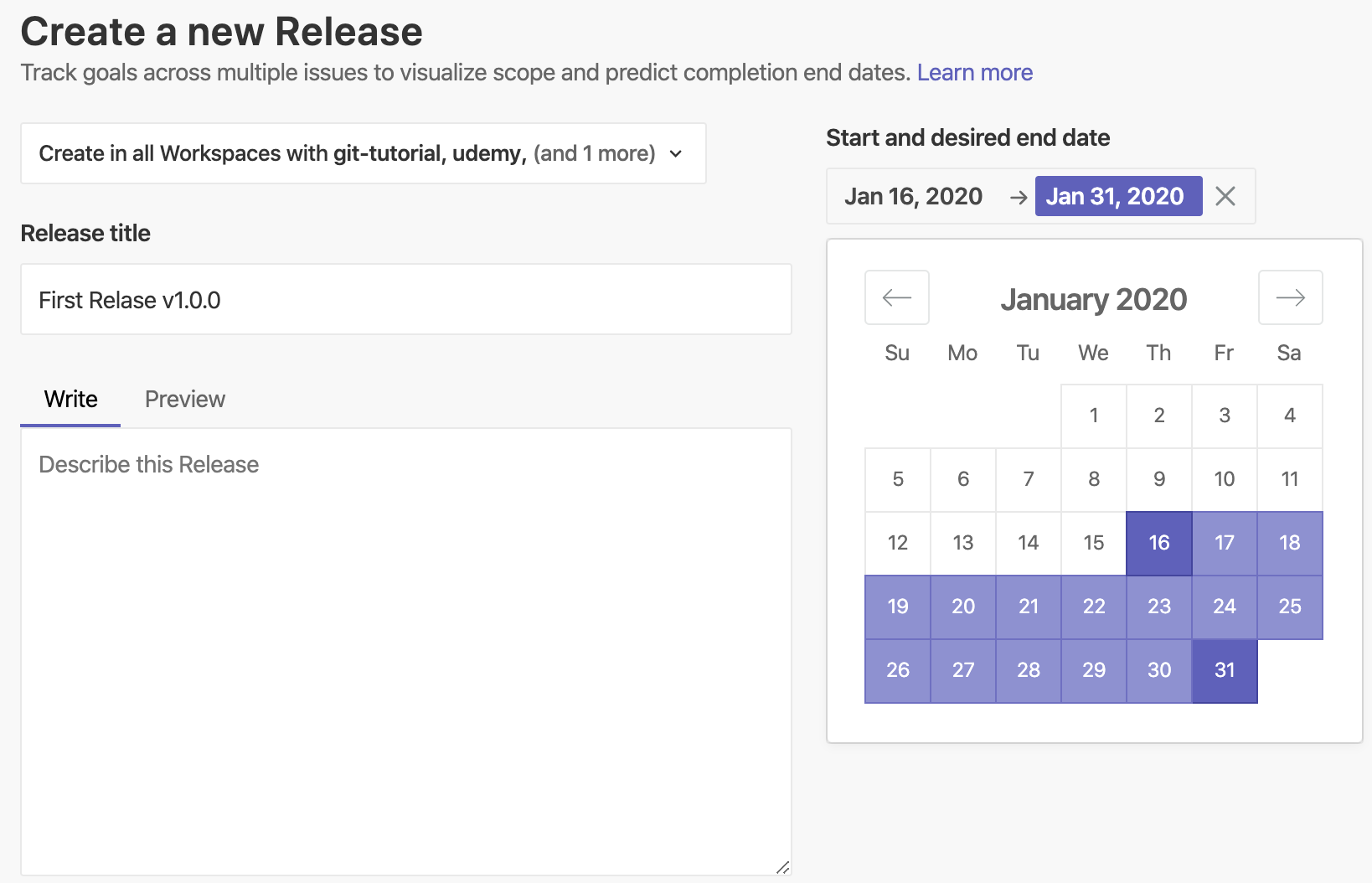 ReleaseはReportから作成できます。リリースには開始日と終了日を設定できます。