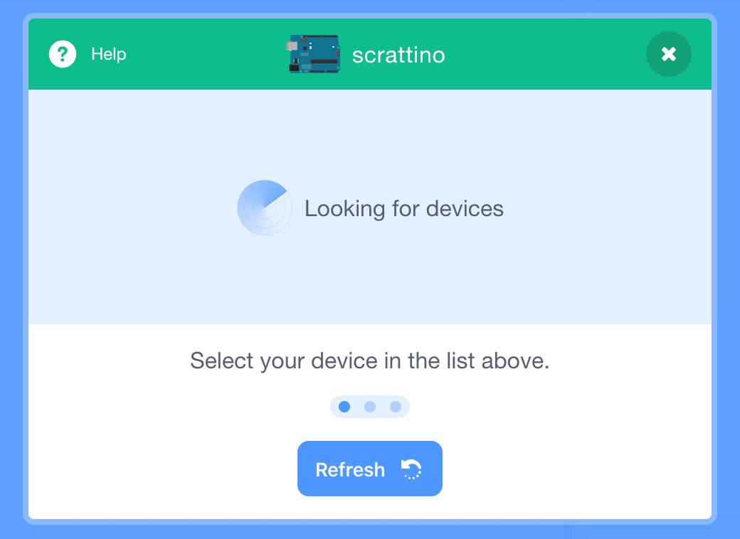 Scrattinoだとデバイスが見つからない。ためしにScrattino2でも同じだった。Scrattino2だとPortが「/dev/tty.usbmodem14401」とパスが違っていたので、もしかしたらこれが問題かもしれない。