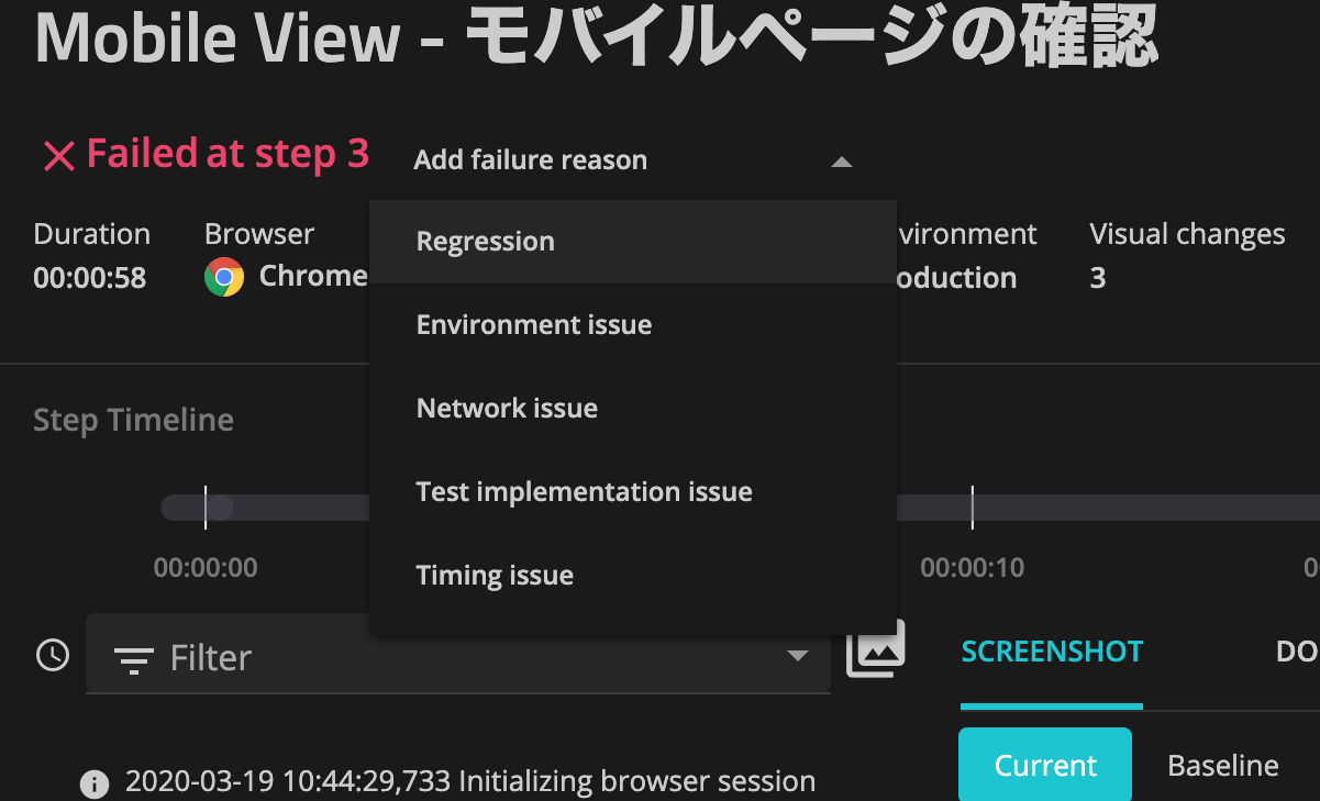 失敗がまだ簡単な機能しかありませんが、失敗したテストにもアノテーションをつけられます。これによって失敗が分類でき、傾向や対策へとつなげていきます。