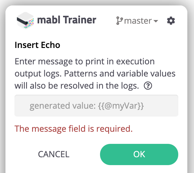 mablは賢いので、変数が削除されていたり、名前が変わっていてもechoステップで失敗しない作りになっています。
