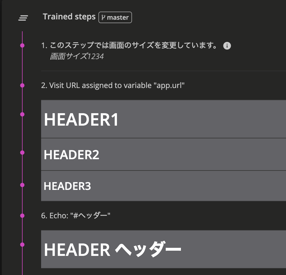 echoステップでは見出しのマークダウンだけ対応しているようです。「#HEADER1」「##HEADER2」「###HEADER3」と記述すれば、上記のように表示されます。