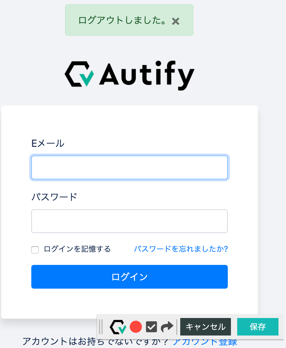 シナリオに名前をつけます。ここでは「Autifyにログイン&ログアウト」にしました。