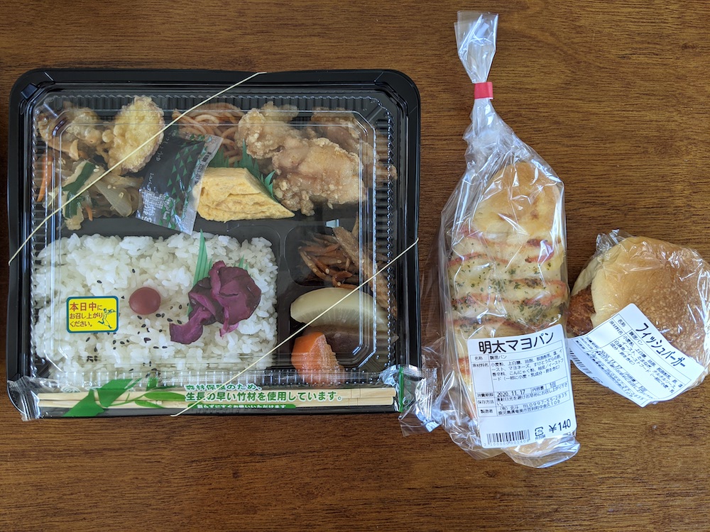 - 食料と飲料(昼食は弁当か漁港、朝食と夕食はほぼスーパー)