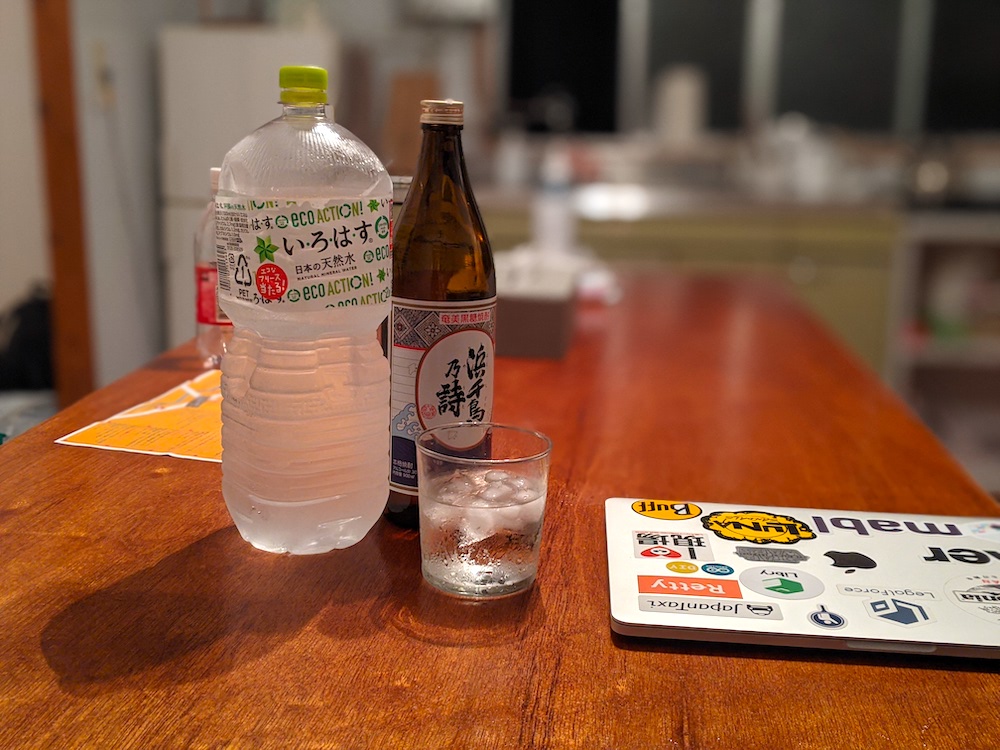 晩酌はキッチンで地元の焼酎を飲み、眠くなったら寝て、陽がさしてきたら起きるシンプルな生活になった。