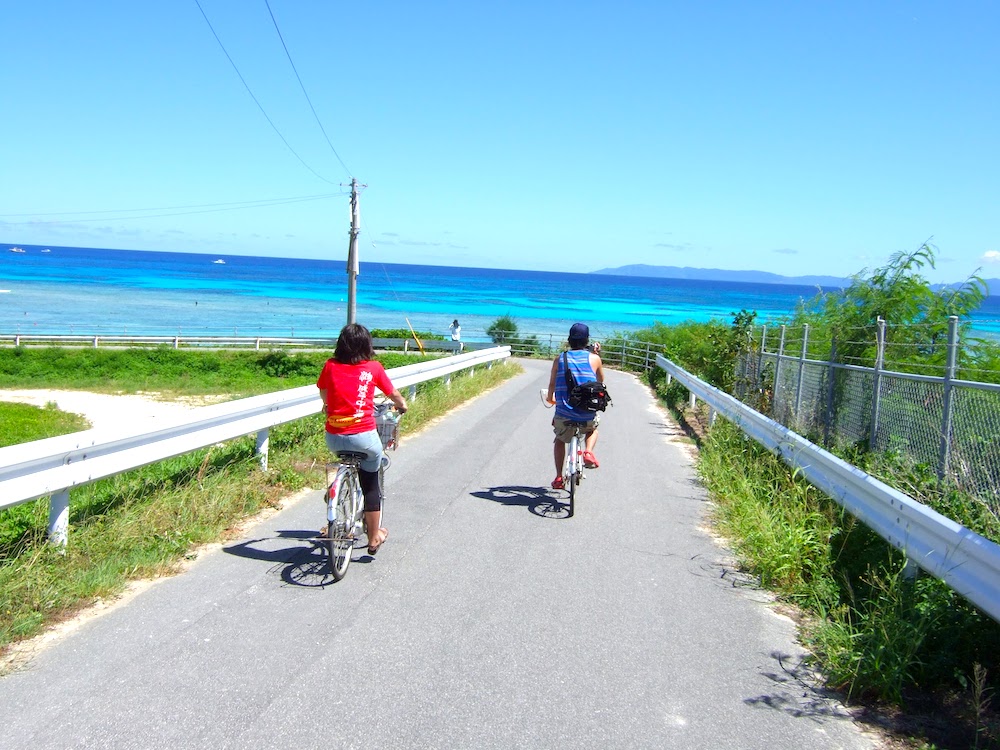 きちんと水分を確保して、自転車でのんびりまわっていくのがおすすめ。おすすめは最南端の碑のほうにぐるっとまわって、最後にニシ浜です。その色彩にびっくりするでしょう。