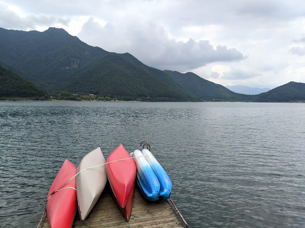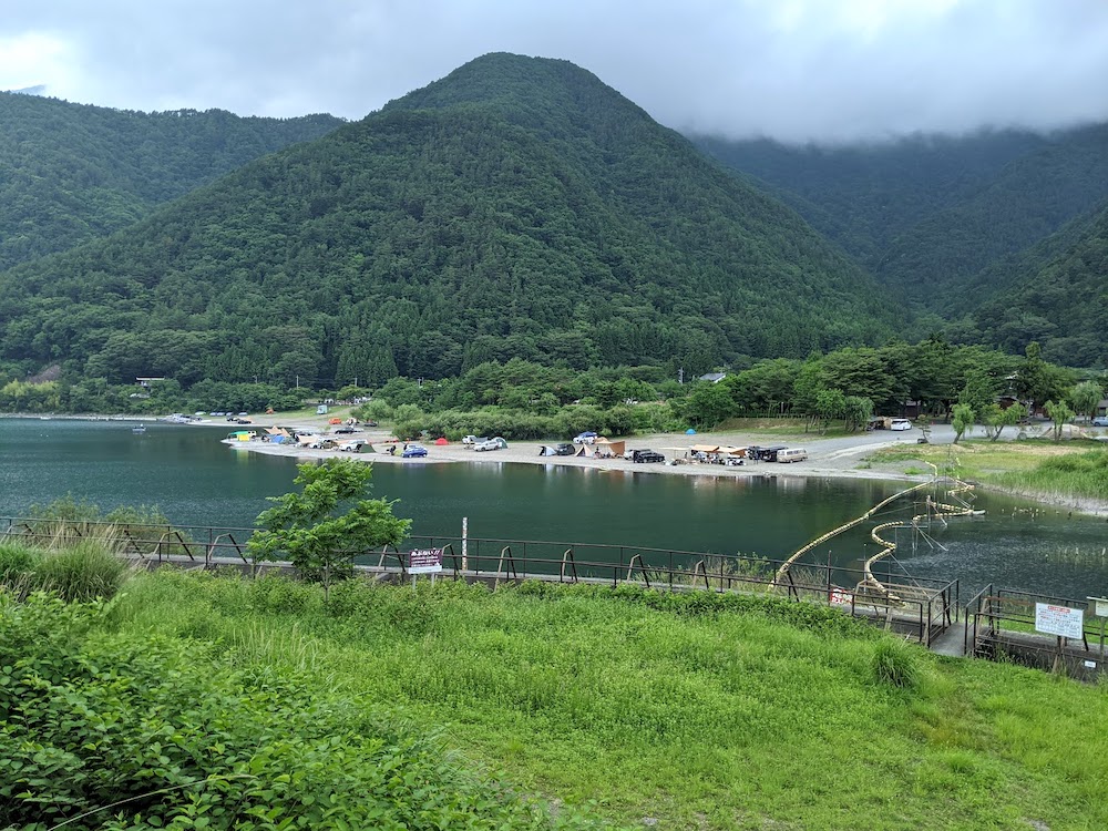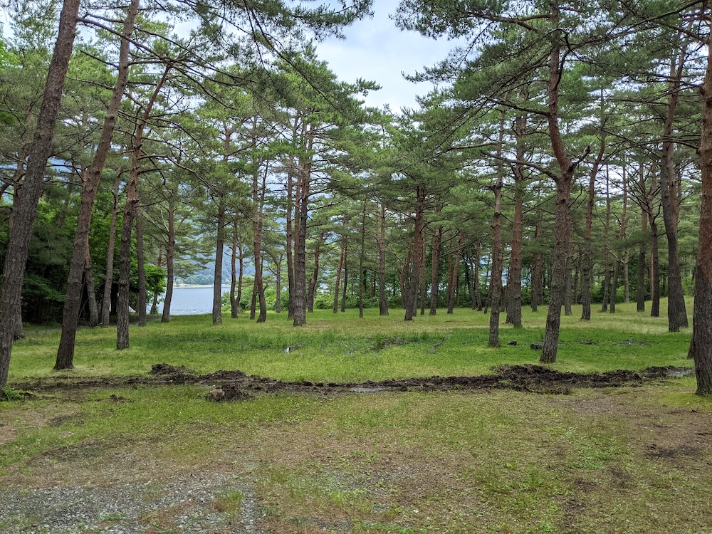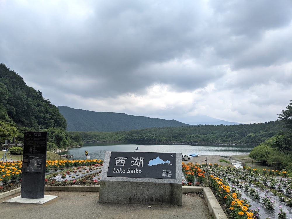 西湖とありますが、湖畔を楽しめる場所ではありませんでした。西湖はきりたった崖に囲まれているので、対岸にいくつか湖畔のキャンプサイトがあるぐらいです。きっと対岸からだと富士山が見えるのでしょうねー。