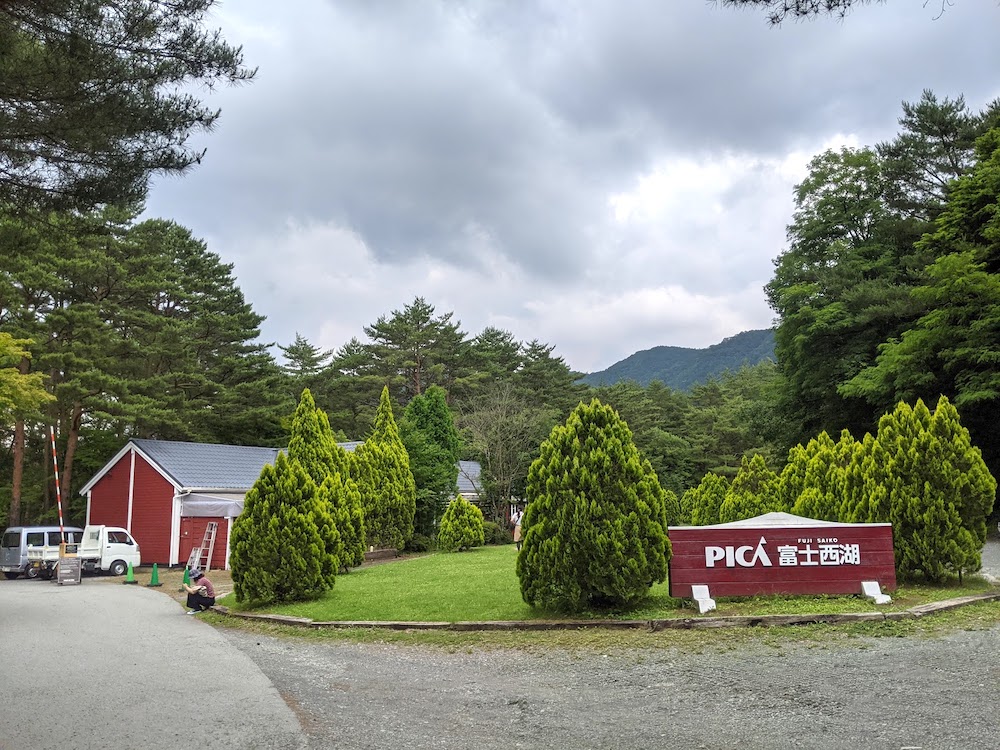 道の駅から少し行けばPICA富士西湖に到着です。国立公園の中にあるキャンプ場です。