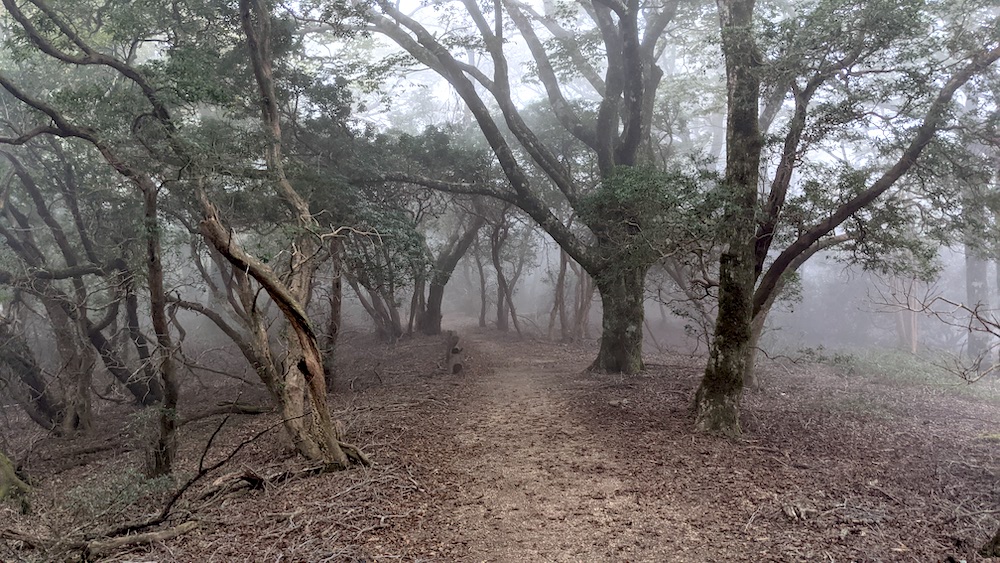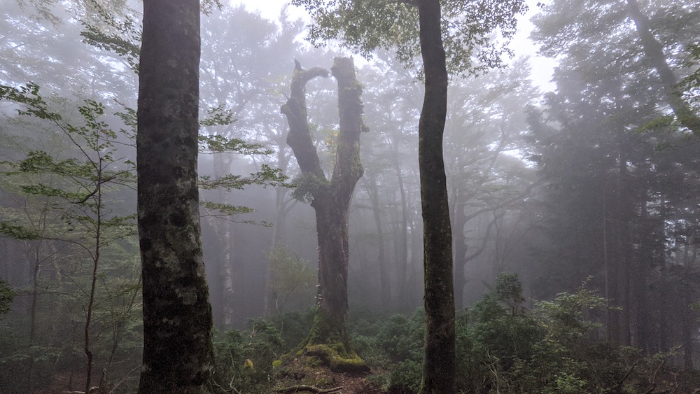 このコースは(YAMAPの活動データはこちら)、景色を眺められるところが少なく、霧が出るとさらになーんも見えなくなるので、のんびり休憩せず歩き続けてしまいました。ときより立ち止まって森を眺めながら水を飲むのもなかなかいいものです。