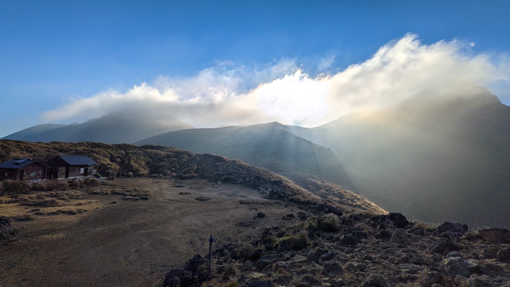 避難小屋にはトイレがあり、ここから見えるいくつかの山への道が続きます。ここに大きな荷物をおいて、ひとつずつ頂上を攻めるのもいいかもしれません。自分は体力に余裕があったので、ピークからピークへ周遊しました。