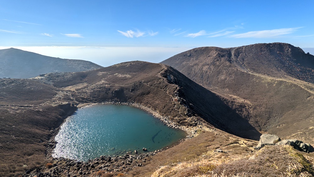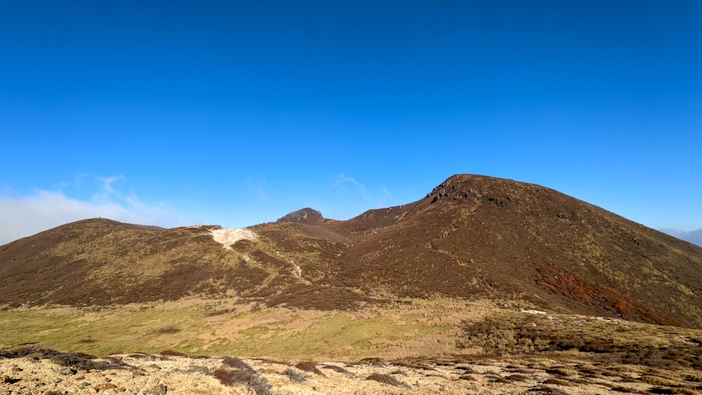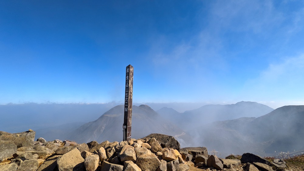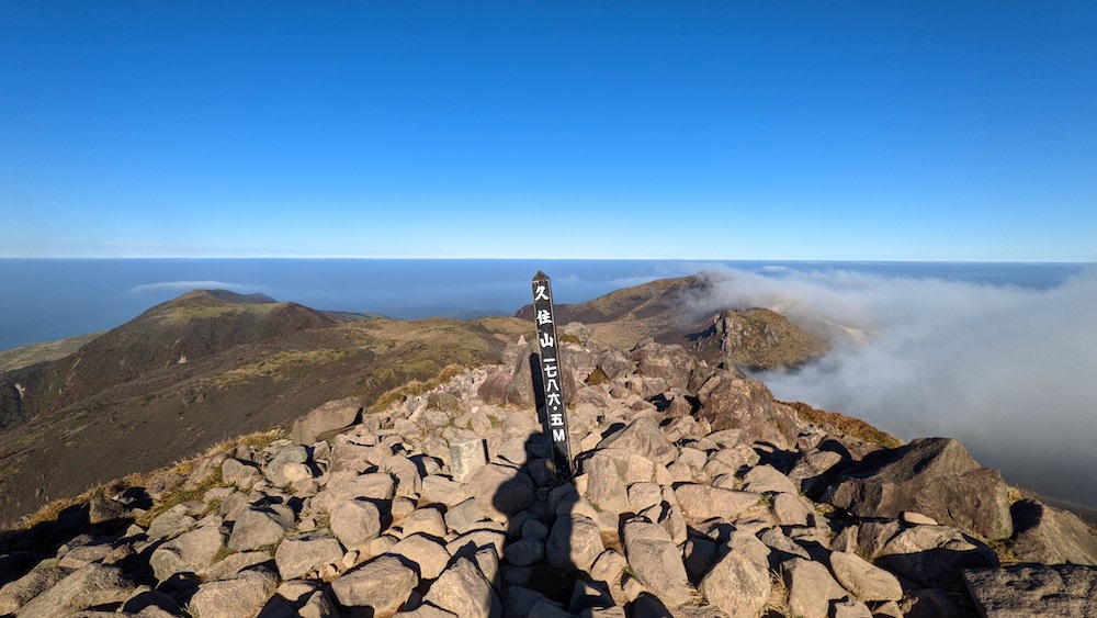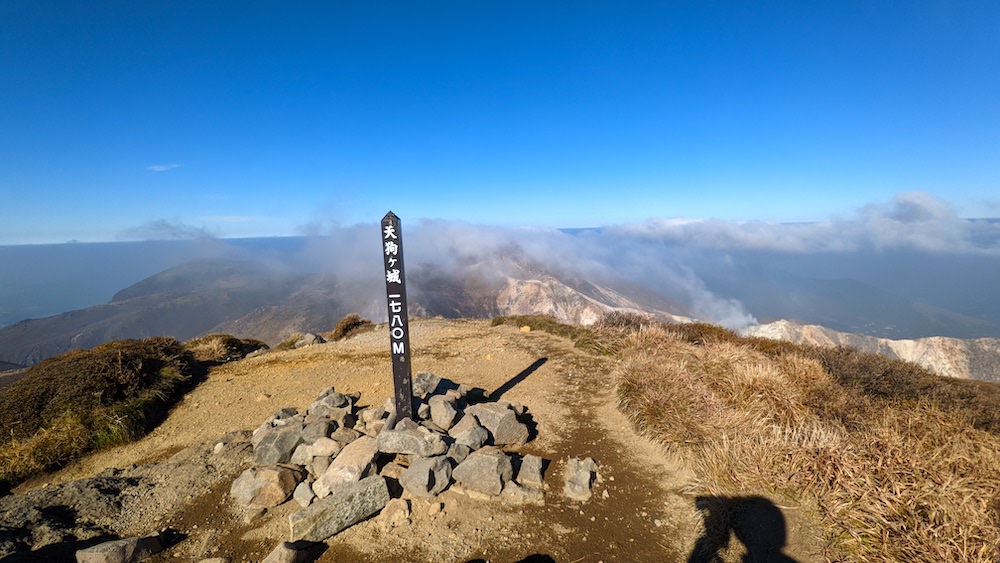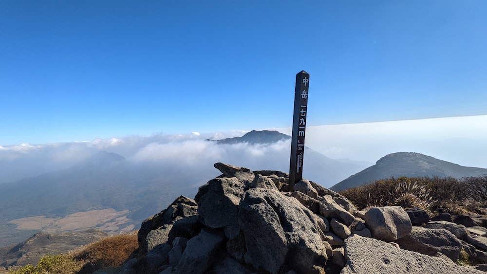 百名山の久住山。僕は風景を楽しむタイプではないので、写真を撮って、標識をぽんぽんと触って、すぐに次に向かいます。