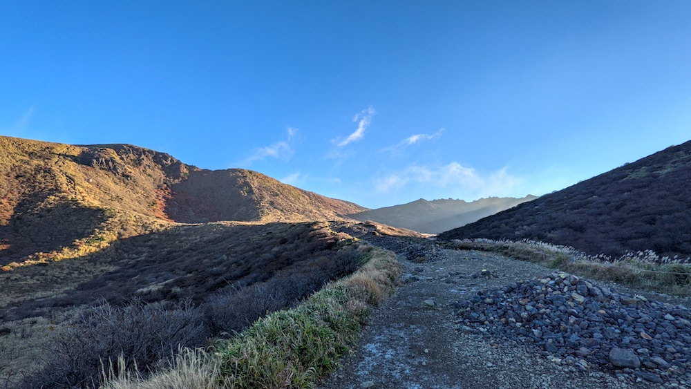 また降りてきて中岳へと向かいます。見晴らしがいい道はいいなぁ。
