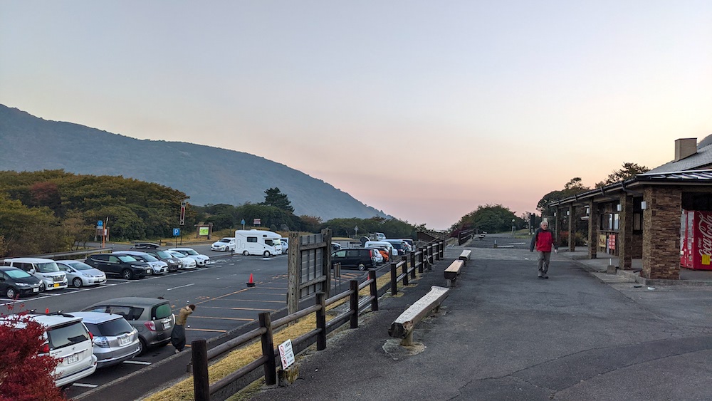 牧ノ戸峠は、レストハウスがあり、駐車場も広い登山口なので、十月の平日でも日の出と共にすぐに満車になる人気登山口です。