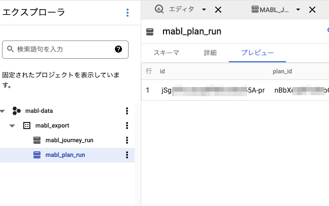 BigQueryをのぞいてみると、テーブルが自動作成されているはずです。