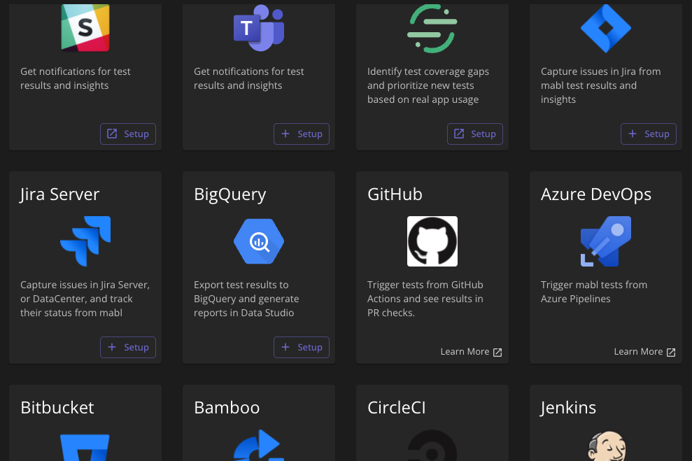 mabl側は、Settings > Integrations から設定を行います。作業はとても簡単です。