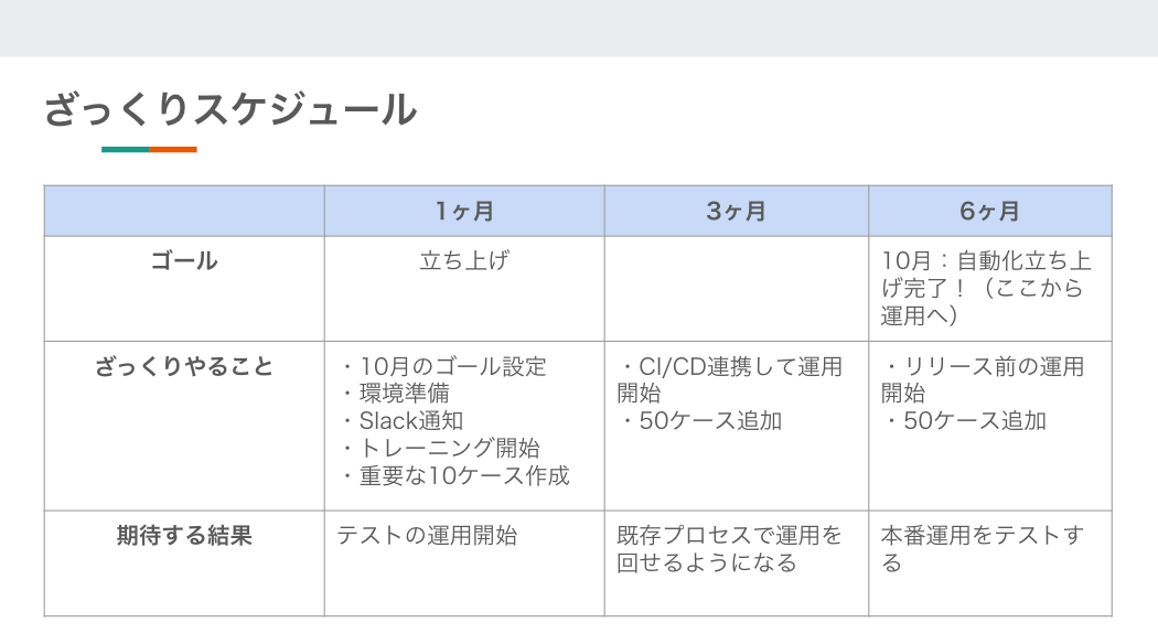 よって、まずは1〜4を簡単なスクリプトでいいので運用してから始めて、ケースを増やせるかどうかをはやく小さく確認していくのがおすすめです。