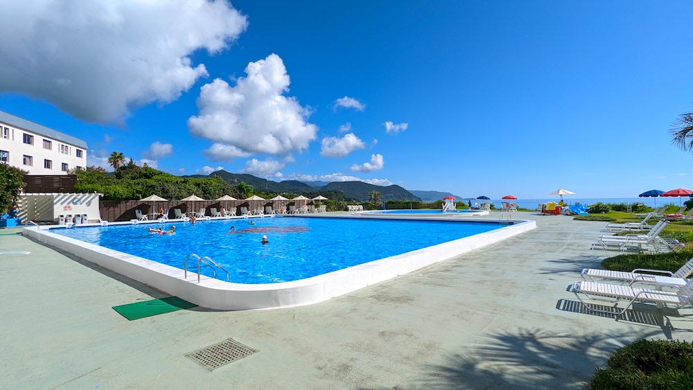 このところの猛暑で日差しが最強でしたが、プールの温度は冷たすぎることなく快適です(今井浜東急ホテルはめっちゃ冷たかった。が、その分、水が綺麗とも言える)。