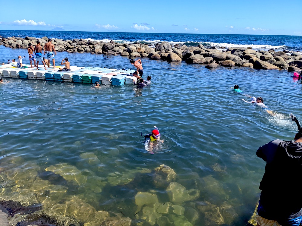 ホテル伊豆急は伊豆のさきっぽなので、途中、休憩も兼ねて「磯Sea Garden IKEJIRI」に遊びに行きました。ここは、塩水のプールと天然の海プールがある場所です。最近名前が変わったみたいですが、検索しにくいので前の「稲取ウキウキビーチ」がよかったなぁw