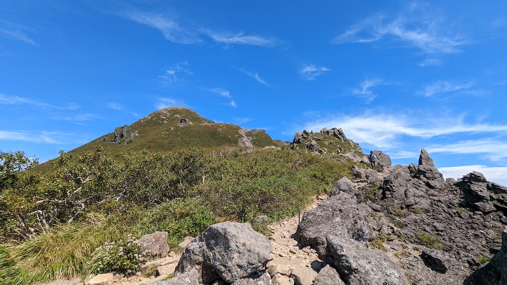 岩木山の頂上への道は、スカイラインを活用すれば数時間のコースなので、スニーカーで歩く家族連れも多かったです。ただ、それほどきれいな登山道ではないので、怪我をしたくなければ登山靴を履くべきでしょう。